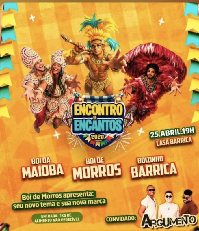 Vem aí o Encontro de Encantos, uma noite especial que marca a prévia do São João do Maranhão, reunindo tradição, emoção e muita cultura popular!