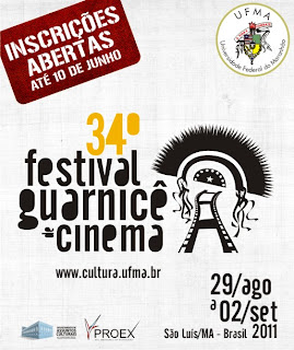 O 34º Festival Guarnicê de Cinema vai entrar em exibição de 29 de agosto a 02 de setembro de 2011, na cidade de São Luís do Maranhão. Promovido pela Universidade Federal do Maranhão, por meio do Departamento de Assuntos Culturais da Pró-Reitoria de Extensão, com apoio de organizações públicas e empresas, o 34º Festival Guarnicê já está com as inscrições abertas no site www.cultura.ufma.br.