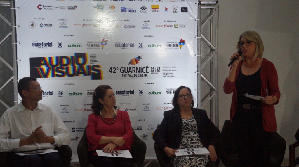 Participaram da coletiva, Luís Carlos Cardoso (do grupo Equatorial/CEMAR, patrocinador do Guarnicê); Haroldo Moura (representante do Banco do Nordeste, também patrocinador do evento); Caroline Veloso (Secretária Adjunta de Cultura Incentivada); Nair Portela (reitora da Universidade Federal do Maranhão); Dorlene de Aquino (pró-reitora de Extensão, Cultura e Empreendedorismo da UFMA) e Fernanda Pinheiro (coordenadora geral do Festival Guarnicê de Cinema).