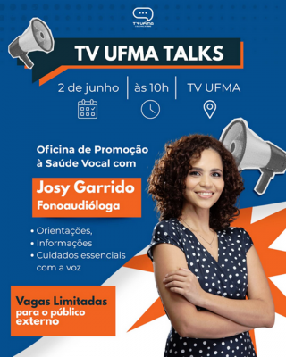 A TV UFMA realizará nova edição do TV UFMA Talks. A ação formativa da política institucional da emissora promove aperfeiçoamento dos profissionais, bolsistas e estagiários da TV e oferta ainda vagas limitadas à comunidade acadêmica e ao público. No dia 02 de junho acontecerá a Oficina de Promoção à Saúde Vocal, ministrada pela fonoaudióloga Josy Garrido, às 10h, na sede da emissora.