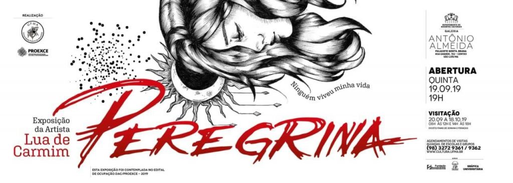 A exposição ‘Peregrina’, que reune 30 desenhos em grafite e óleo sobre papel produzidos pela jovem desenhista Lua de Carmim, será inaugurada na próxima quinta-feira, 19 de setembro de 2019, às 19h, na Galeria Antônio Almeida do Palacete Gentil Braga (rua Grande, 782-Centro), em São Luís/MA. Contemplada pelo Edital de Ocupação da referida galeria, a mostra é aberta ao público.