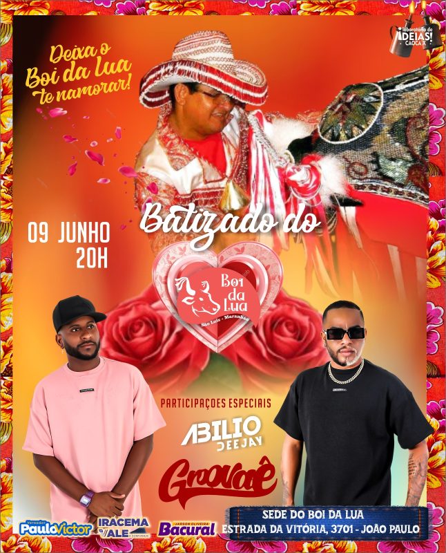 Boi da Lua realiza seu batizado e comemora seus 30 anos de existência e resistência, com muito sucesso na sua trajetória cultural. O professor Washington Coelho, presidente do grupo, esclarece que este ano de 2023 o Boi da Lua terá no auto do boi a lenda da vitória-régia, uma das mais conhecidas do folclore brasileiro, pertence à cultura do norte em virtude de ter nascido nessa região do país. Segundo Airton Rolim essa lenda, “a vitória-régia é originalmente uma índia que se afogou após se inclinar no rio para tentar tocar o reflexo da Lua. Para os índios, a Lua era Jaci, deusa da Lua na mitologia tupi, que transformava as índias que escolhia em estrelas do céu”.
