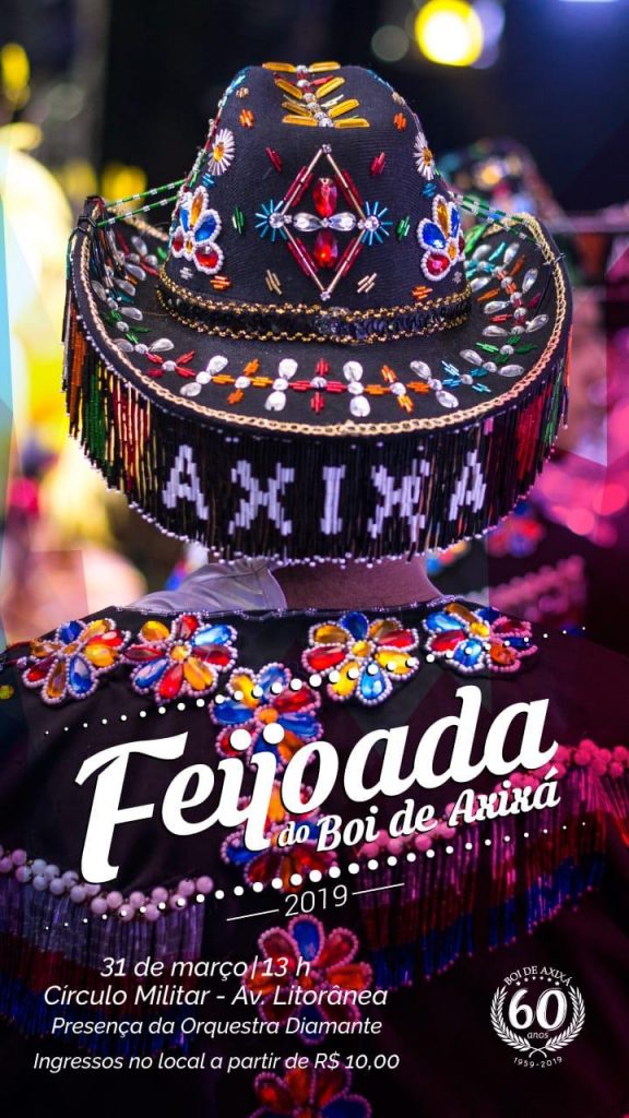 Referência no folclore do Maranhão, o Boi de Axixá realiza, no próximo domingo (31), a partir das 13h, no Círculo Militar/Calhau, uma feijoada maravilhosa. Os ingressos estão à venda na Loja Retoque Final, no Monumental Shopping e serão vendidos no local do evento.