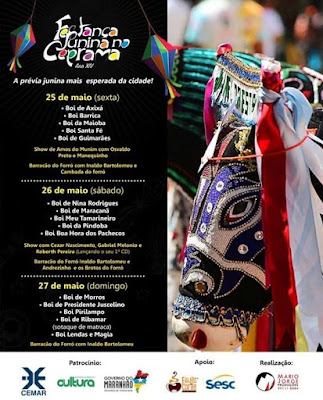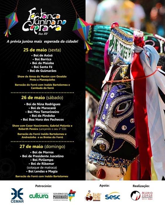 Bois Barrica, Guimarães, Santa Fé, Maioba e Axixá nessa sexta, na 14ª Festança Junina no Ceprama