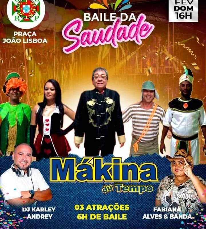 A consagrada banda Mákina du Tempo será a principal atração do Baile da Saudade, que acontece neste domingo magro de Carnaval (12), na sede social do Grêmio Lítero Recreativo Português, na Praça João Lisboa, no Centro de São Luís. A folia no tradicional clube da capital maranhense terá inicio às 16h, com o melhor das marchinhas, sambas e demais ritmos que animaram os salões de outrora, além de músicas de sucesso no período carnavalesco em todos os tempos.