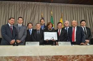 Em cerimônia no plenário do Legislativo Municipal, a vice-presidente do TJ, desembargadora Anildes Cruz, representando a presidente da Corte, desembargadora Cleonice Freire, recebeu a placa e o diploma homenageando o Poder Judiciário.