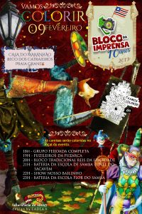Em parceria com a Sectur do Governo do Maranhão, o Bloco da Imprensa abre-alas nesse sábado para o grupo Feijoada Completa, Bloco Tradicional Reis da Liberdade, Bateria da Escola de Samba Túnel do Sacavém, show ‘Nosso Bailinho’ e a fabulosa’ Bateria da Flor do Samba. Pela primeira vez, o bloco receberá a tradicional e genuína batucada maranhense dos Fuzileiros da Fuzarca. Vista a sua camisa de alegria, amor e paz e participe!