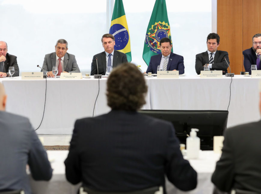 No encontro de ministros, segundo depoimento o ex-ministro da Justiça e Segurança Pública Sergio Moro, o presidente Jair Bolsonaro sinalizou intenção de interferir politicamente na Polícia Federal por meio da troca do comando na corporação no Rio de Janeiro.