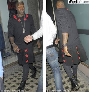 Djibril Aruun Cissé, atacante da seleção francesa e do Queens Park Rangers, da Inglaterra, mostrou que tem estilo ao comemorar seu aniversário numa boate de Londres. Flagrado de manhã, ao sair do estabelecimento (com um olhar que parecia meio embriagado, diga-se de passagem), o jogador, famoso pelos cabelos descoloridos, vestia uma saia preta estampada com estrelas vermelhas sobre uma calça legging bem justa, além de botas pretas de cano alto.