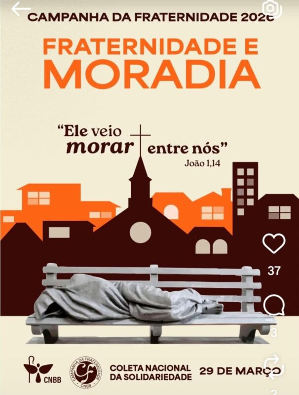 A Campanha da Fraternidade é realizada anualmente pela Igreja no Brasil durante a Quaresma, como caminho de conversão, solidariedade e compromisso social. Em 2026, ao voltar-se para a realidade da moradia, a Igreja convida todos a construir uma sociedade mais justa, onde ninguém seja excluído do direito de “morar com dignidade”. Seu gesto concreto, a Coleta Nacional da Solidariedade, acontecerá no dia 29 de março.