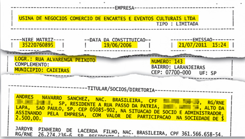 A Sol Brasil Promoções e Eventos Ltda. deveria ser encontrada na mesma rua do bairro de Vila Olímpia onde está localizada a Santa Aldeia, casa noturna frequentada por pessoas ligadas ao futebol. “A empresa não está mais aqui desde o início do ano”, atestou um funcionário do edifício. Em um prédio comercial na avenida Ibirapuera, em Moema, deveria estar a Biosfera Promoções e Eventos Ltda., mas funciona um escritório de advocacia. “Essa empresa nunca esteve sediada aqui”, afirmou uma das recepcionistas. Quem trabalha no número 143 da rua Alvarenga Peixoto, na cidade de Caieiras, região metropolitana de São Paulo, também nunca ouviu falar na Usina de Negócios Comércio de Encartes e Eventos Culturais Ltda. E no centro comercial de Alphaville não há representante da ASN Participações. Uma funcionária do escritório de advocacia que fica no local afirma que o lugar serve apenas para receber correspondência. Essa última empresa e outras duas estão bloqueadas parcialmente por ordem da Delegacia da Receita Federal em Jundiaí, desde maio de 2009. Questionado por ISTOÉ, Sanchez limitou-se a dizer que seus negócios particulares não têm relação com o Corinthians. “Mas desconheço a empresa Biosfera, e a Sol Brasil Promoções e Eventos está inativa há seis meses e sendo transferida pelo meu contador”, afirmou.