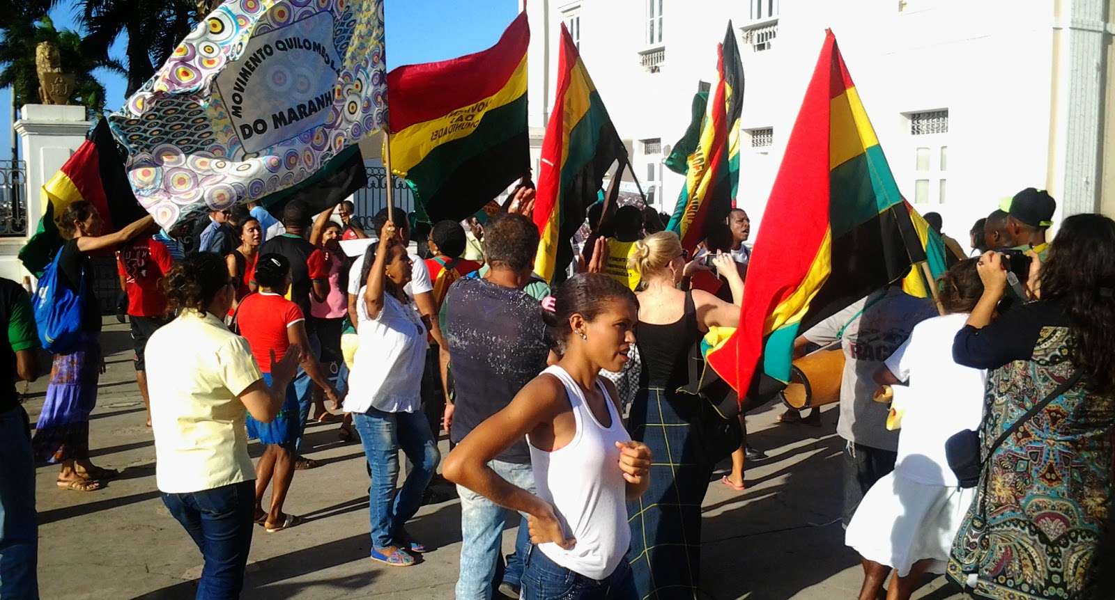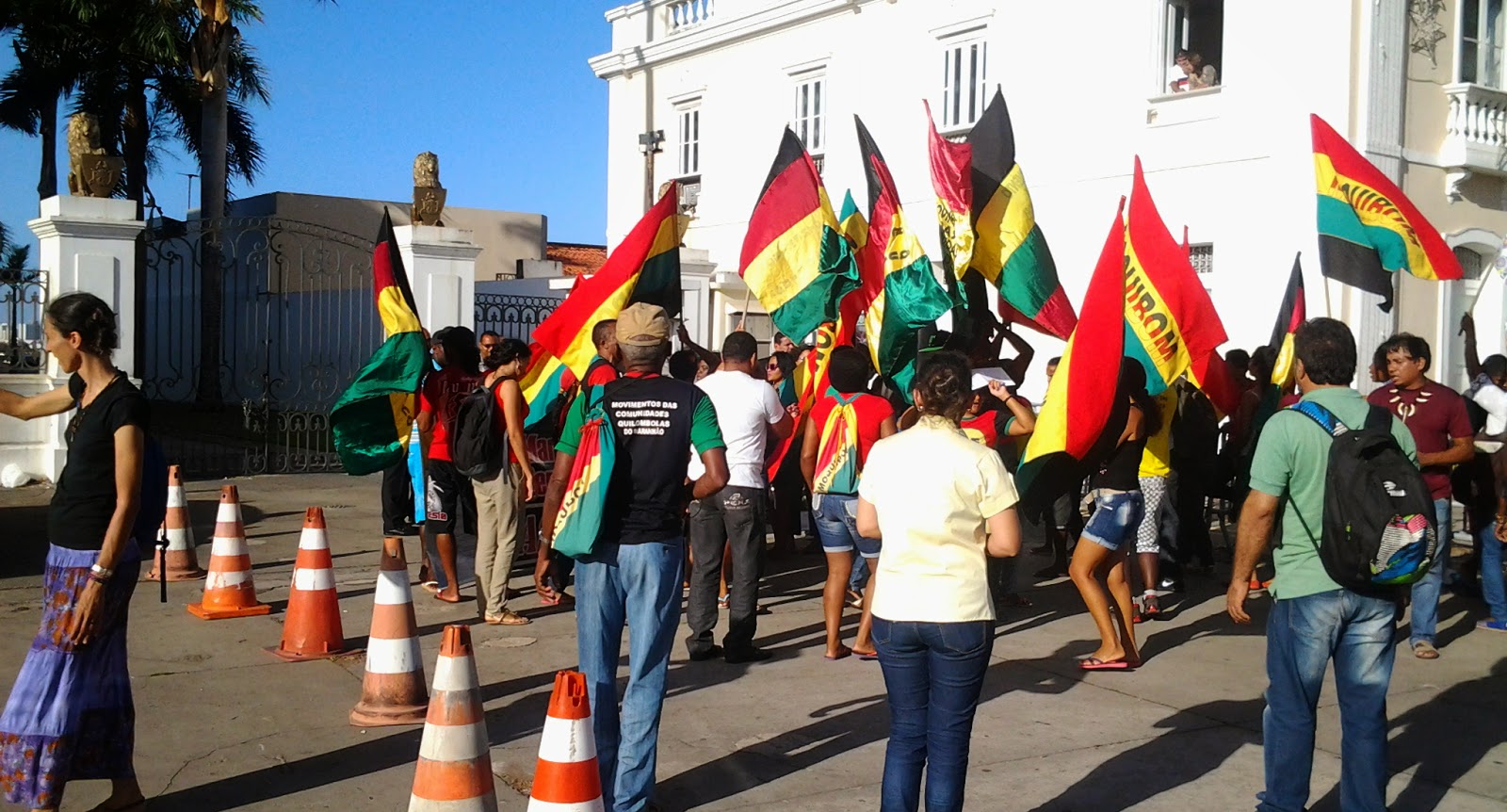Cerca de 100 representantes de comunidades rurais e quilombolas da zona rural de São Luís e do interior do Estado, ameaçadas de despejo por empreendimentos privados, fazem protesto na tarde desta quinta-feira(27) em frente ao Palácio dos Leões. Eles conseguiram romper as barreiras colocadas pela governadora Roseana Sarney em toda a área no entorno do palácio.