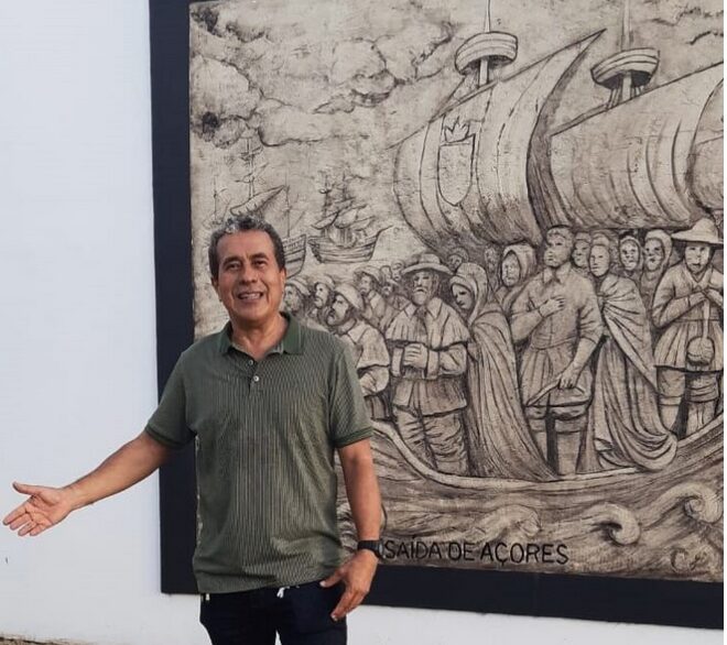 Quem for à Praça dos Açores, inaugurada nesta semana, pelo governador Carlos Brandão, terá a oportunidade de olhar uma belíssima obra das artes visuais do Maranhão. A obra é um conjunto de 10 painéis, de autoria do escultor Eduardo Sereno, que expõe a trajetória dos açorianos da Europa para o Maranhão. Os painéis são em baixo relevo. Foram feitos por Eduardo Sereno em argamassa. Cada um tem 3m50cm X 3m50cm.