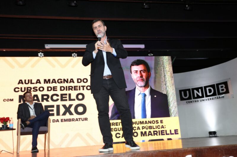 O Curso de Direito da UNDB, desde a sua criação há mais de 20 anos, tem como eixo central a defesa dos Direitos Humanos. No quarto melhor centro universitário do país, há vários projetos de pesquisa e extensão nessa área, desenvolvidos por docentes e alunos de Direito, como destacou a Reitora da instituição, Profa. Dra. Ceres Murad na abertura da Aula Magna do Curso de Direito. O evento teve como convidado o militante de direitos humanos e atual Presidente da Embratur Marcelo Freixo, que falou sobre o tema “Direitos Humanos e Segurança Pública: O Caso Marielle”.