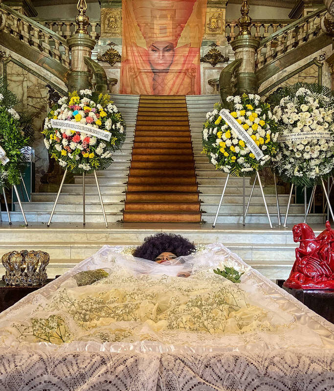 No início da manhã, sete coroas de flores ocupavam espaço atrás do caixão. Mais tarde, às 12h30, viam-se 11 coroas ali —entre elas, uma enviada por Zeca Pagodinho e outra pelo Flamengo. Após uma bandeira do Clube de Regatas do Flamengo ser estendida sobre o seu corpo, o público puxou uma salva de palmas em honra à artista.