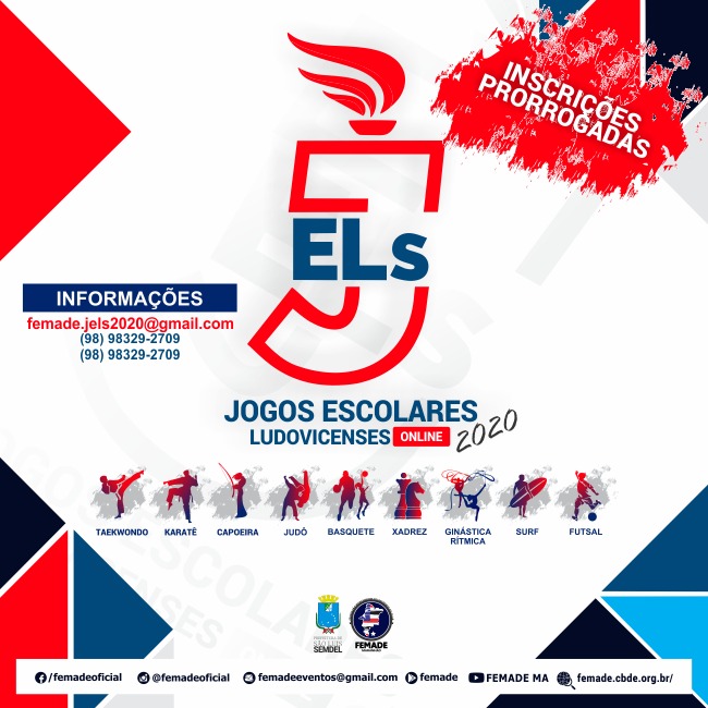 Informações sobre os Jogos Escolares Ludovicenses assim como os detalhes de como serão realizadas as competições esportivas de forma online estão disponíveis no site oficial do evento (http://femade.cbde.org.br/) e nas redes sociais (@femadeoficial). Quem preferir, pode entrar em contato com a organização dos JELs pelos telefones (98) 98895-8474 ou (98)98329-2709.