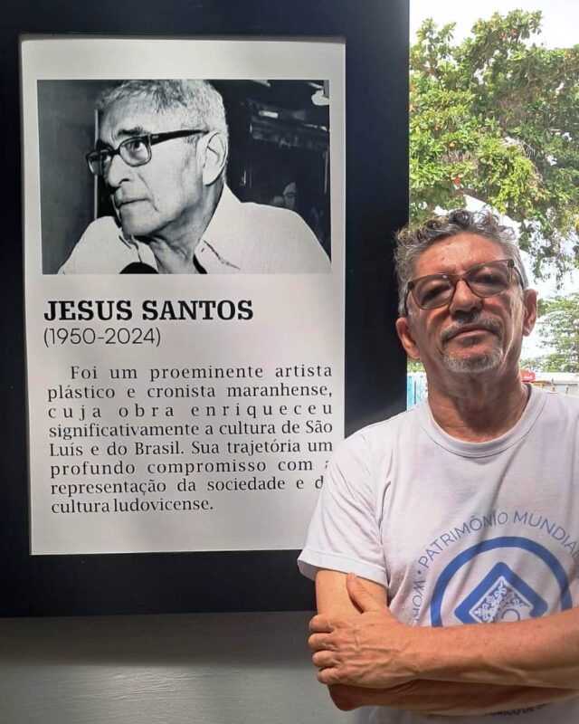O diretor da Galeria Trapiche Trapiche, Uimar Júnior, anunciou em suas mídias sociais a abertura de pautas para artistas visuais que desejam expor suas criações artísticas no Espaço Expositor Jesus Santos, sediado na Galeria Trapiche do Complexo Trapiche Santo Ângelo. O artista visual Ribamar Carvalho faz a abertura com 30 trabalhos. Será nesta sexta-feira, 28 de novembro 11, às 17h, na Avenida Senador Vitorino Freire, s/n – Praia Grande. Para solicitação de pauta, entre em contato com o diretor da Galeria Trapiche, Uimar Júnior. O artista plástico Jesus Santos faleceu aos 74 anos, em São Luís. Jesus Santos foi um dos mais importantes artistas plásticos contemporâneos de São Luís. Jesus Santos (1950-2024) foi um proeminente artista plástico e cronista maranhense, cuja obra enriqueceu significativamente a cultura de São Luís e do Brasil. Sua trajetória artística e literária refletiu um profundo compromisso com a representação da sociedade e da cultura ludovicense.