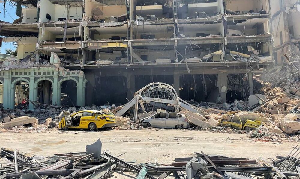 Fotos do jornal oficial do Partido Comunista, o Granma, mostram imagens do prédio do hotel, de vários andares, com as paredes derrubadas pela explosão.