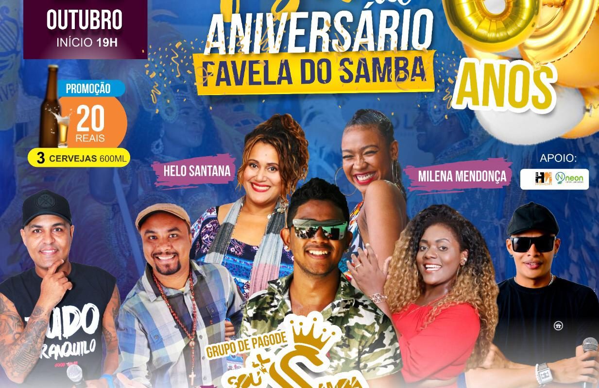 A Sociedade Recreativa Favela do Samba realiza neste sábado, 26 de outubro, a partir das 19 horas, em sua quadra no Sacavém, a festa para comemorar a passagem dos 69 anos da escola que mais conquistou títulos na história do carnaval de passarela em São Luís. Já foi 19 vezes campeã do carnaval maranhense, e almeja garantir quer garantir o vigésimo campeonato em 2020.