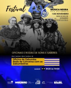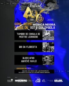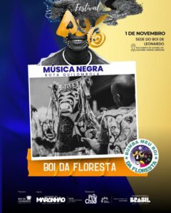 A programação musical reúne nomes que expressam a diversidade da música negra no Maranhão, como DJ Makanak Brother, Tambor de Crioula Mestre Leonardo, DJ Clisma, Bloco Afro Abiyeye Maylô, DJ Peito de Pombo e o tradicional Bumba Meu Boi da Floresta. A fusão entre beats eletrônicos e ritmos ancestrais revela o pulsar criativo de uma nova geração de artistas negros e quilombolas que reinventam suas raízes sem abrir mão da tradição.