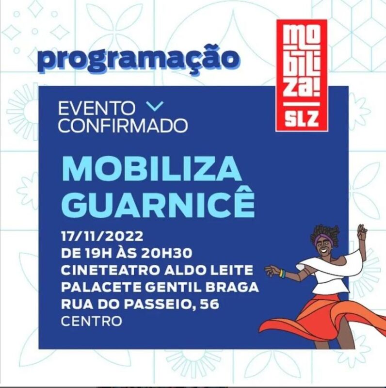 O movimento Mobiliza SLZ traz como parte de sua programação um evento audiovisual promovido em parceria com a  Pró-reitoria de Extensão e Cultura da Universidade Federal do Maranhão: o Mobiliza Guarnicê. No próximo dia 17, será realizada uma mostra especial de produções maranhenses, com videoclipes e curtas-metragens que ganharam prêmios ou se destacaram na última edição do Festival Guarnicê de Cinema, que aconteceu entre os dias 23 e 30 de setembro de 2022.