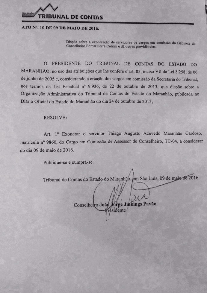 Procurado pela coluna, o conselheiro que o empregava disse inicialmente que o filho de Waldir Maranhão ia ao trabalho “todo mês”. Depois se corrigiu e disse que o funcionário aparecia “duas, três, quatro vezes por semana”. Desligou o telefone e não voltou a atender às ligações. A assessoria do deputado foi contatada na sexta-feira (22), mas não se manifestou.