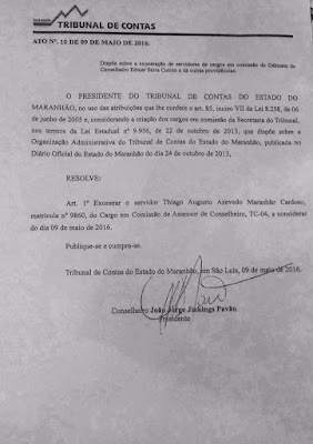 Carnê do baú – Filho de Waldir Maranhão, Thiago Augusto vai devolver ao Tribunal de Contas do Maranhão R$ 565.163,06 — em entrada mais 24 prestações. Augusto foi nomeado assessor da corte estadual por um aliado do pai, mas trabalhava como médico em São Paulo. Ele foi exonerado do posto em 9 de maio, quando a coluna revelou o caso.