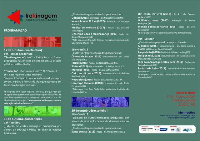 A cineasta maranhense Nádia de Cássia, que também é atriz e preparadora de elenco, busca auxílio financeiro para participar na Mostra Trakinagem de Cinema e Educação e custear suas despesas com viagem, alimentação e hospedagem. A mostra será realizada nos dias 17, 18 e 19 de outubro em Uberlândia – Minas Gerais.