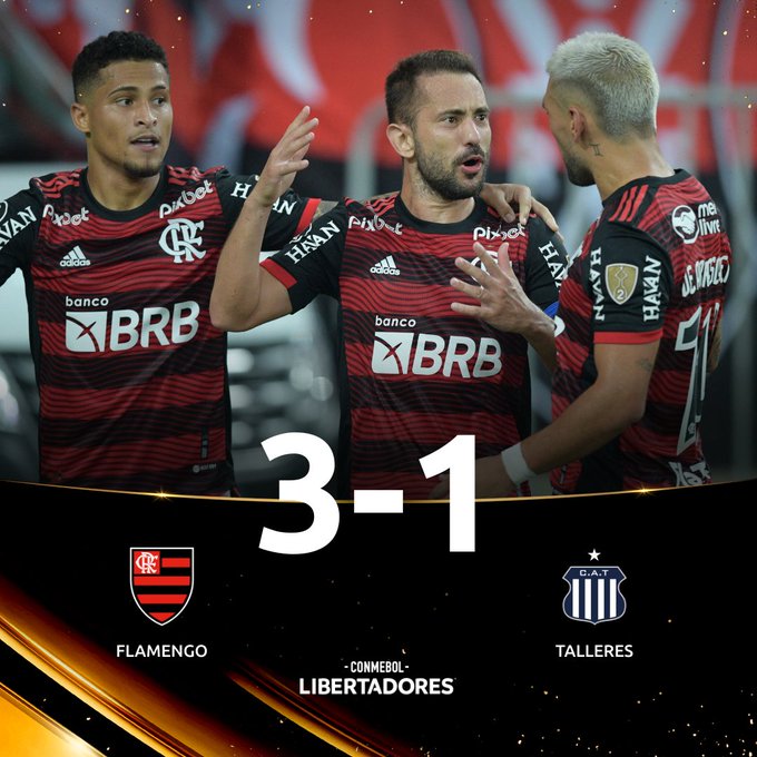 Apoiado por mais de 42 mil torcedores, o Flamengo derrotou o Talleres (Argentina) por 3 a 1, nesta terça-feira (12) no estádio do Maracanã, para manter a liderança do Grupo H da Copa Libertadores.