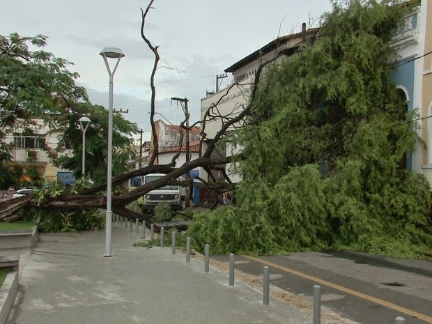 Uma arvore da Praça da Alegria, no Centro de São Luís, caiu após as fortes chuvas que atingiram a capital maranhense na tarde desta quinta-feira (16).