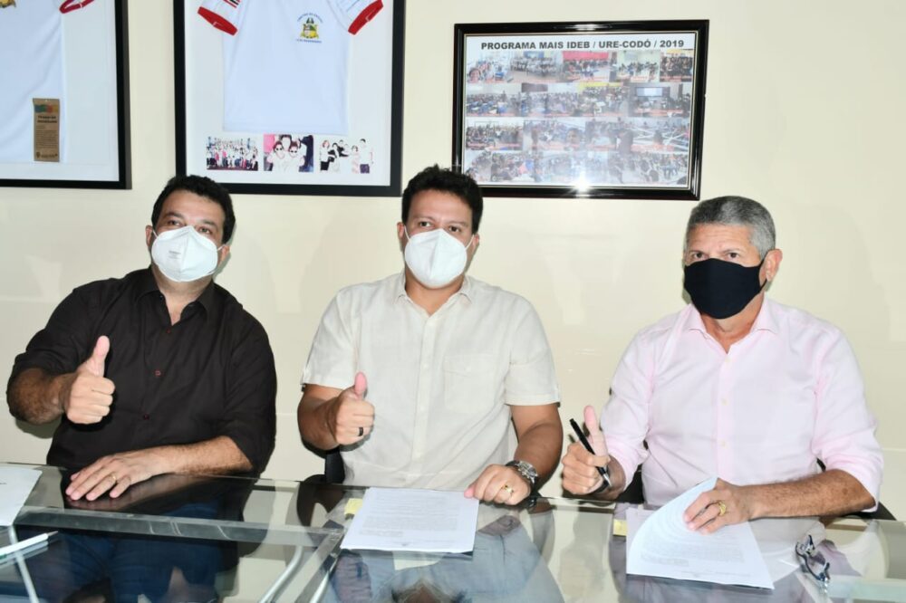 Nesta quarta-feira (22), o secretário de Estado da Educação, Felipe Camarão, e o prefeito de Icatu, Wallace Azevedo, assinaram convênio de cooperação técnica-financeira para a construção de uma Escola Digna no Povoado Palmeiras, no município. A escola beneficiará cerca de 70 famílias das comunidades Palmeiras, Serraria e Santa Isabel e terá a Ordem de Serviço para sua construção assinada em outubro.