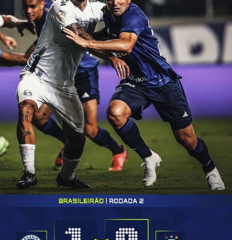 Em uma atuação abaixo de sua média, o Grêmio perdeu para o Cruzeiro por 1 a 0 neste sábado, pela segunda rodada do Brasileirão. A partida disputada no Independência, em Belo Horizonte, marcou o reencontro das equipes campeã e vice da Série B do ano passado, e foi decidida com um gol na segunda etapa, após enorme pressão dos cruzeirenses e resistência tricolor, que mais se defendeu do que procurou jogo.