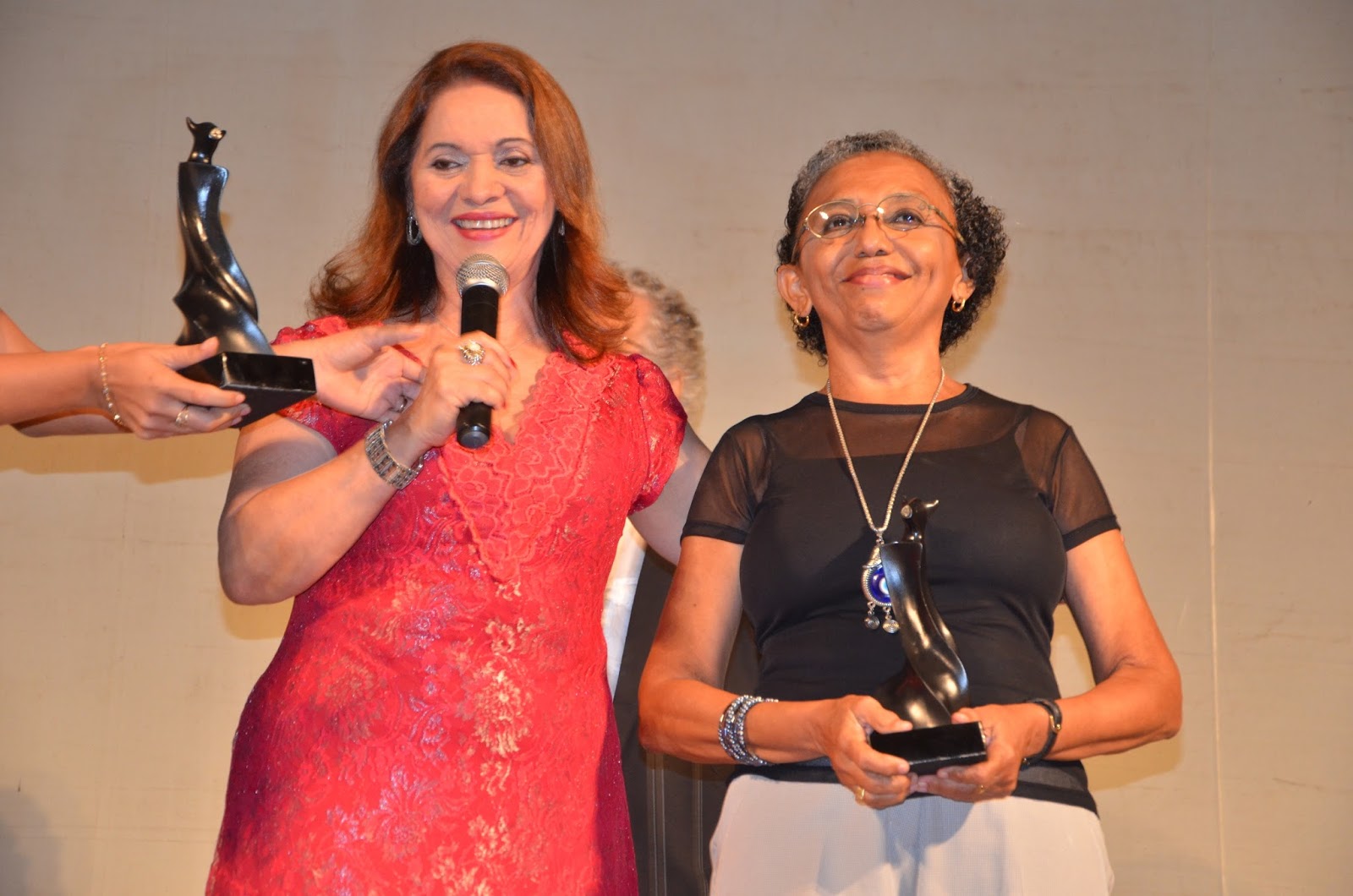 Ao lado de Neville, a técnica em assuntos culturais, Maria do Carmo Nunes, da equipe do DAC, também recebeu homenagens e o troféu Guarnicê das mãos da reitora Nair Portela. Um símbolo de gratidão por todos os serviços prestados por ela ao Festival Guarnicê. Surpresa, Maria do Carmo agradeceu aos amigos. “Estou muito honrada pela homenagem porque no cotidiano trabalhamos intensamente da melhor forma possível e não imaginamos que as pessoas do dia a dia podem fazer essa referência ao nosso trabalho”.