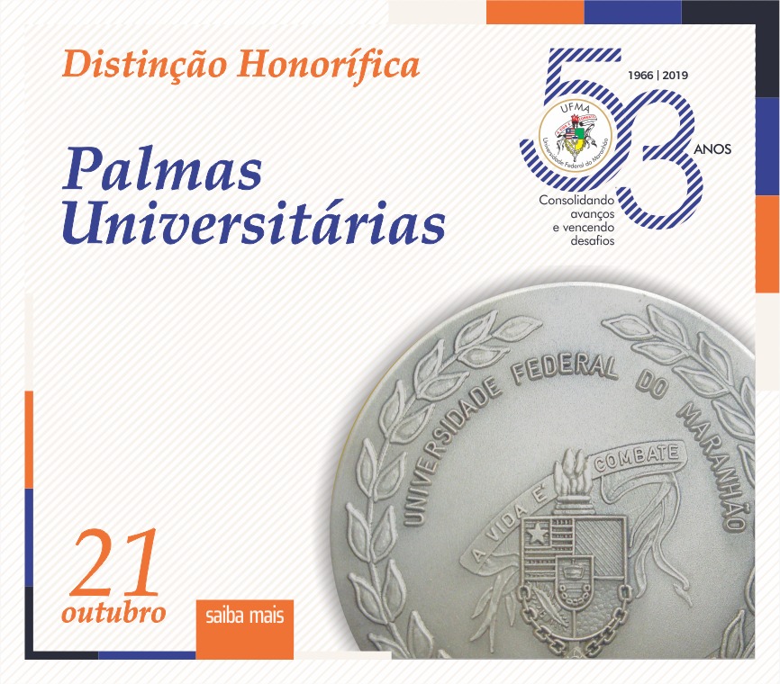 A Universidade Federal do Maranhão realizará nesta segunda-feira, dia 21 de outubro, às 18h30, a solenidade de entrega da distinção honorífica Palmas Universitárias. O evento ocorrerá no Auditório Central da Reitoria como parte das comemorações do 53º aniversário da Instituição.