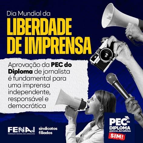 A liberdade de exercício da imprensa, pressuposto do Jornalismo e princípio basilar de sociedades democráticas, é luta obrigatória e permanente da Federação Nacional dos Jornalistas e de seus 31 sindicatos filiados.