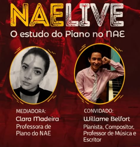 O jovem artista Willame Belfort participará, nesta terça-feira (04), de uma Live promovida pelo Núcleo Arte-Educação do Teatro Arthur Azevedo. Willame foi aluno de piano do NAE em 2013 e, de 2016 a 2018, atuou como professor no projeto e primeiro pianista oficial da maior casa de espetáculo do Maranhão. O evento virtual faz parte das programações que estão sendo realizadas durante a pandemia e visa dar continuidade às atividades do NAE (coordenado por Ione Coelho). A Live será transmitida pelo Instagram @teatroarthurazevedooficial às 16h, tendo como tema “o estudo do piano no NAE” e será mediado pela professora Clara Madeira.