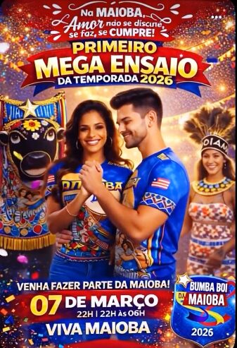 🔥✨ A emoção já começa a tomar conta dos nossos corações, e chegou o momento de darmos oficialmente o primeiro passo rumo à nossa grande Temporada 2026! Maiobeiros, matraqueiros, pandeireiros, onceiros, brincantes e apaixonados pela cultura popular estão convidados para viver uma noite histórica no PRIMEIRO MEGA ENSAIO DA MAIOBA🎶