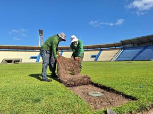 Entre as melhorias, estão os reparos no sistema de irrigação com troca de válvulas e tubos, corte do gramado na horizontal e vertical, tratamento fitossanitário com aplicações de inseticidas e fungicidas, adubação química e aplicação de areia lavada (28m³).
