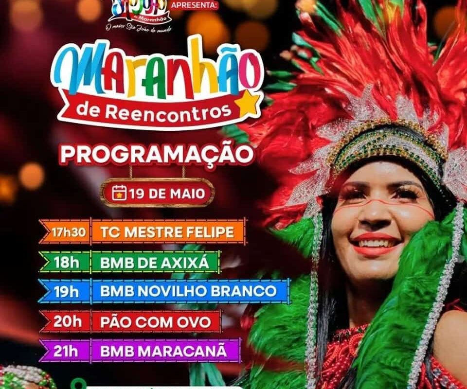 A partir do próximo domingo (19) será dada a largada para o São João do Maranhão 2024, com a primeira noite de shows do Maranhão de Reencontros, projeto do Governo do Maranhão, coordenado pela Secretaria de Estado da Cultura (Secma), que marca o início das prévias juninas no estado.