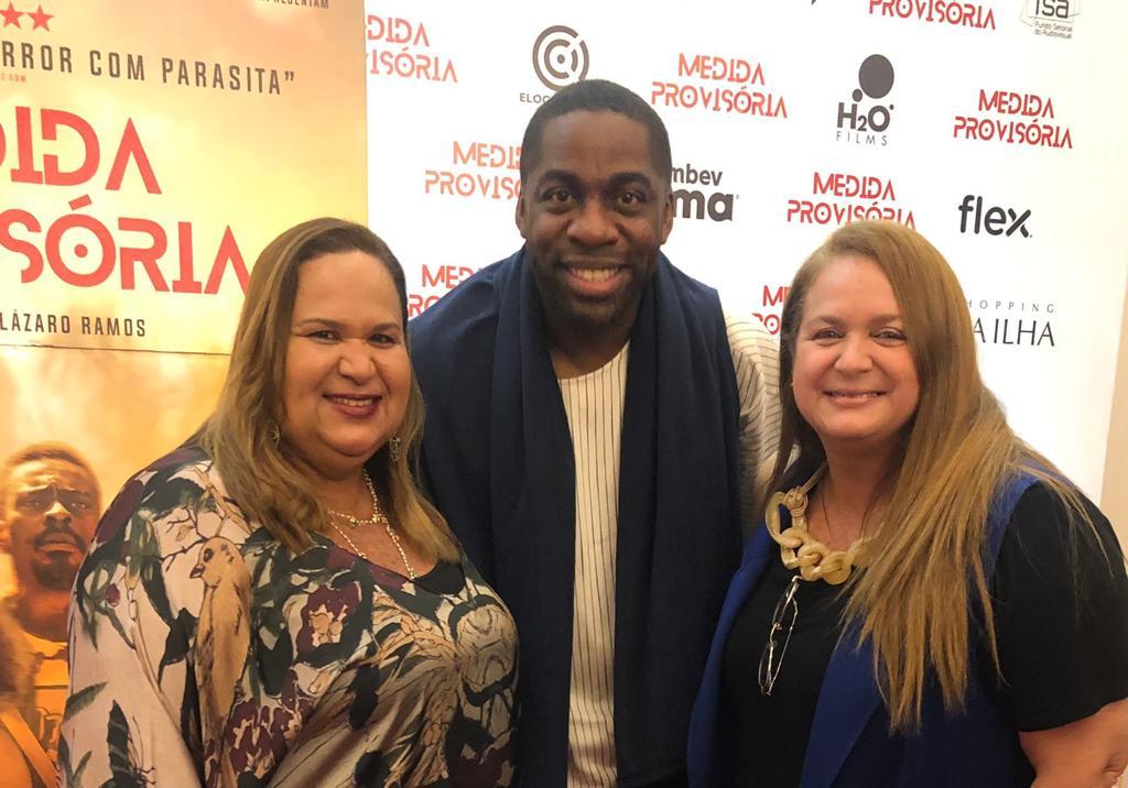 Na foto, o diretor e ator Lázaro Ramos, entre as jornalistas Danielle e Adriana Vieira que veio especialmente para a estréia do filma em São Luís