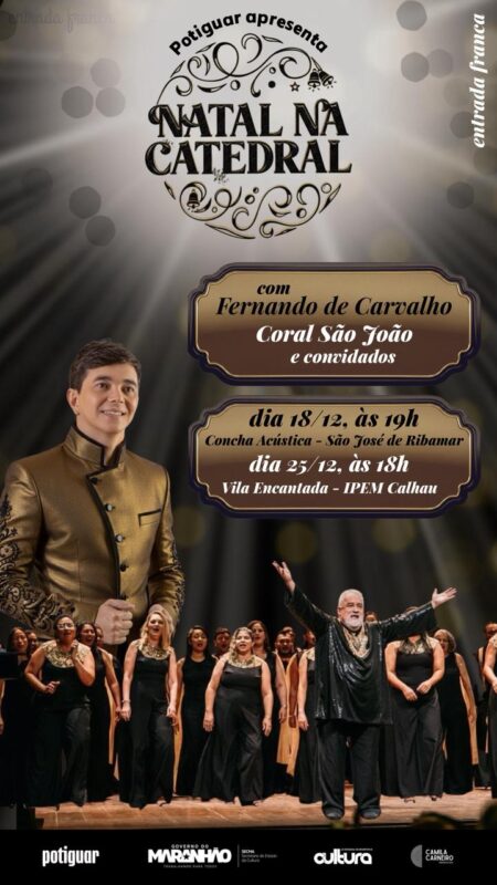 O cantor Fernando de Carvalho apresenta, ao lado do Coral São João, o tradicional concerto “Natal na Catedral”, projeto que há mais de 25 anos emociona o público ao unir música, espiritualidade e celebração natalina. Em 2025, o espetáculo será realizado em duas apresentações gratuitas, em São José de Ribamar e em São Luís.