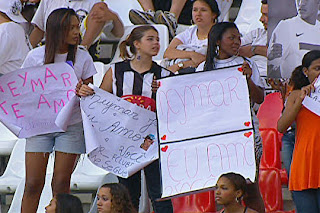 Pollyana chega meio perdida, mas de repente ouve o grito da sua tribo! Ela não quis nem saber das amiguinhas. Ficou colada na grade durante todo o jogo. No fim de partida, Neymar fez quatro gols. Se fosse no domingo, ia pedir música.