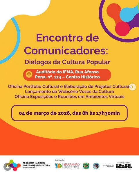 O Comitê de Cultura do Maranhão convida você para um dia de troca, aprendizado e valorização da nossa identidade! ✨🎭