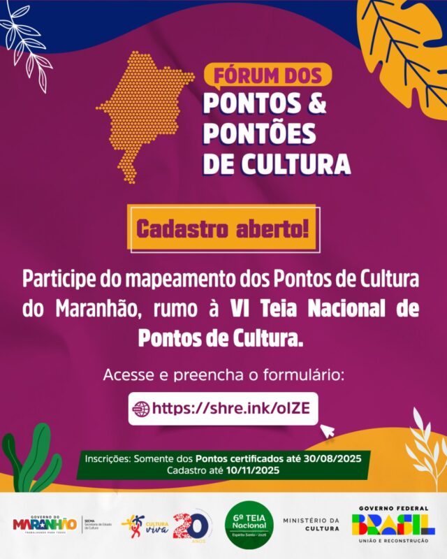 Esse mapeamento vai atualizar as informações sobre os Pontos e Pontões de Cultura do Maranhão e preparar o estado para o 2º Fórum Estadual de Pontos e Pontões de Cultura, que acontecerá nos dias 14 e 15 de novembro.