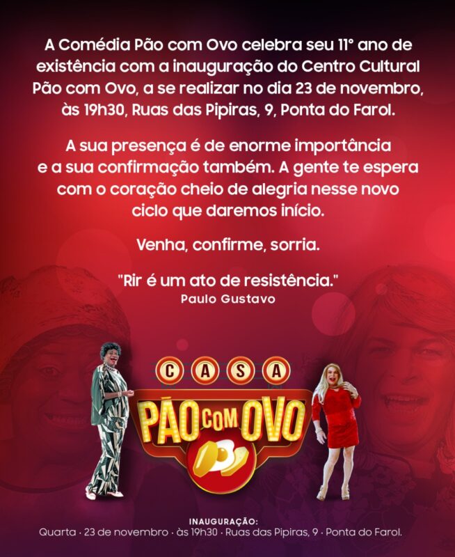 São 11 anos de sucesso, e queremos compartilhar essa alegria com você em nossa “Casa Pão com Ovo”, um espaço cercado de muita cor e, claro, aquele toque especial da Dijé e da Clarisse. Confirme sua presença!