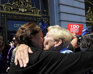 Os partidários ao casamento homossexual na Califórnia aguardavam a decisão do juiz próximo aos cartórios na esperança de já poder efetuar o casamento.