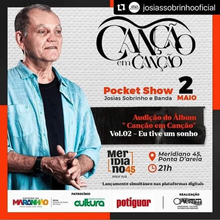 Na ocasião, Josias Sobrinho estará acompanhado dos músicos Sued Richallys (guitarra), Lucas Sobrinho (baixo e voz), Cassiano Sobrinho (bateria e voz), Ricardo Sandoval (percussão) e João Neto (flauta). A sonorização é de Maurício Capella, produção de Tatiana Ramos e apoio de Lenita Pinheiro e Fernanda Sombra. No pocket show (uma iniciativa independente), além da audição das novas músicas, Josias Sobrinho conversa com o público sobre todo o processo da concepção deste trabalho, e canta grandes sucessos da carreira, de sua autoria como “Catirina”, “Engenho de Flores”, “Dente de Ouro”, “De Cajari pra Capital”, “Três Potes” e “Terra de Noel”.