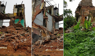 Parte dos escombros caiu sobre outro prédio ao lado, onde residem algumas pessoas. Segundo a solicitante de ajuda aos Bombeiros não havia ninguém no local.