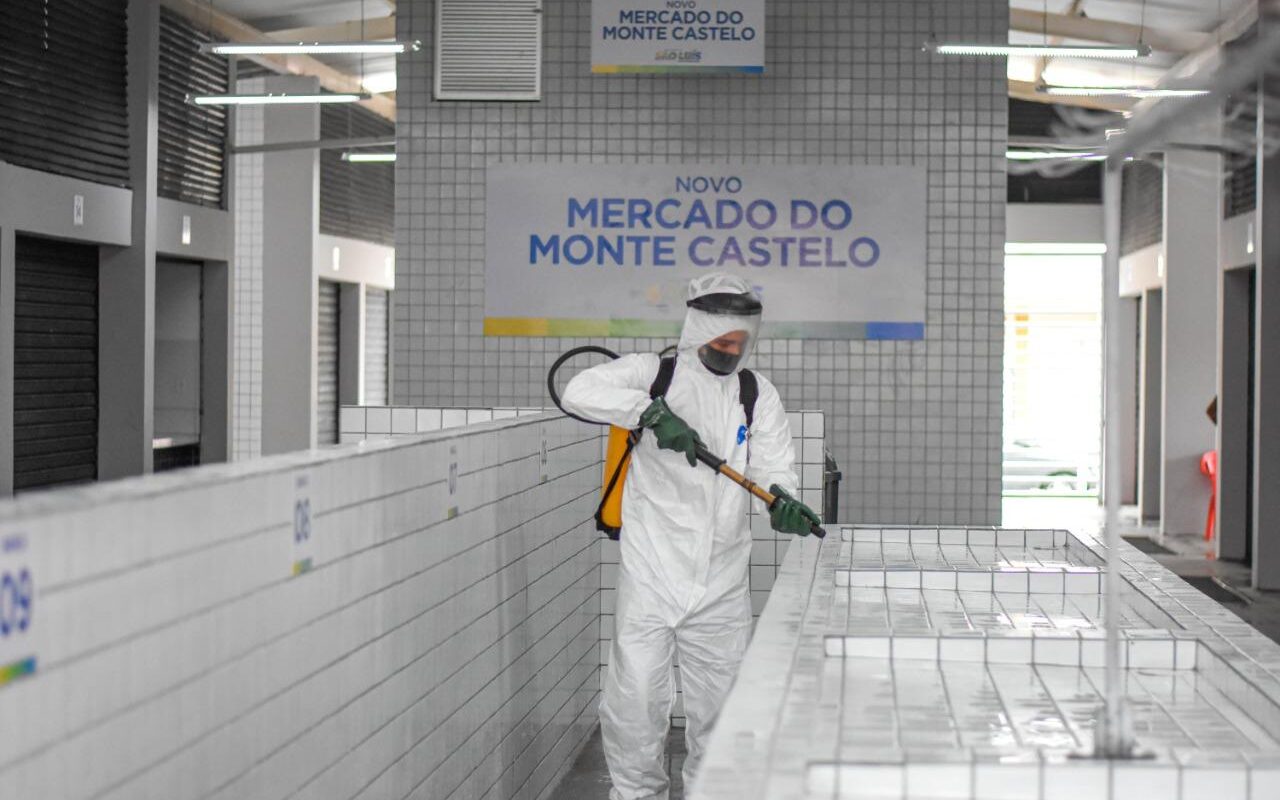 A Prefeitura de São Luís, por meio das secretarias municipais de Agricultura, Pesca e Abastecimento (Semapa) e de Obras e Serviços Públicos (Semosp) vem mantendo a higienização de vários espaços com grande circulação de pessoas. Na manhã desta sexta-feira (19), foi realizada a sanitização do Mercado do Monte Castelo. É o terceiro mercado a receber a limpeza especializada, prevista no Plano Municipal de Enfrentamento à Covid-19.