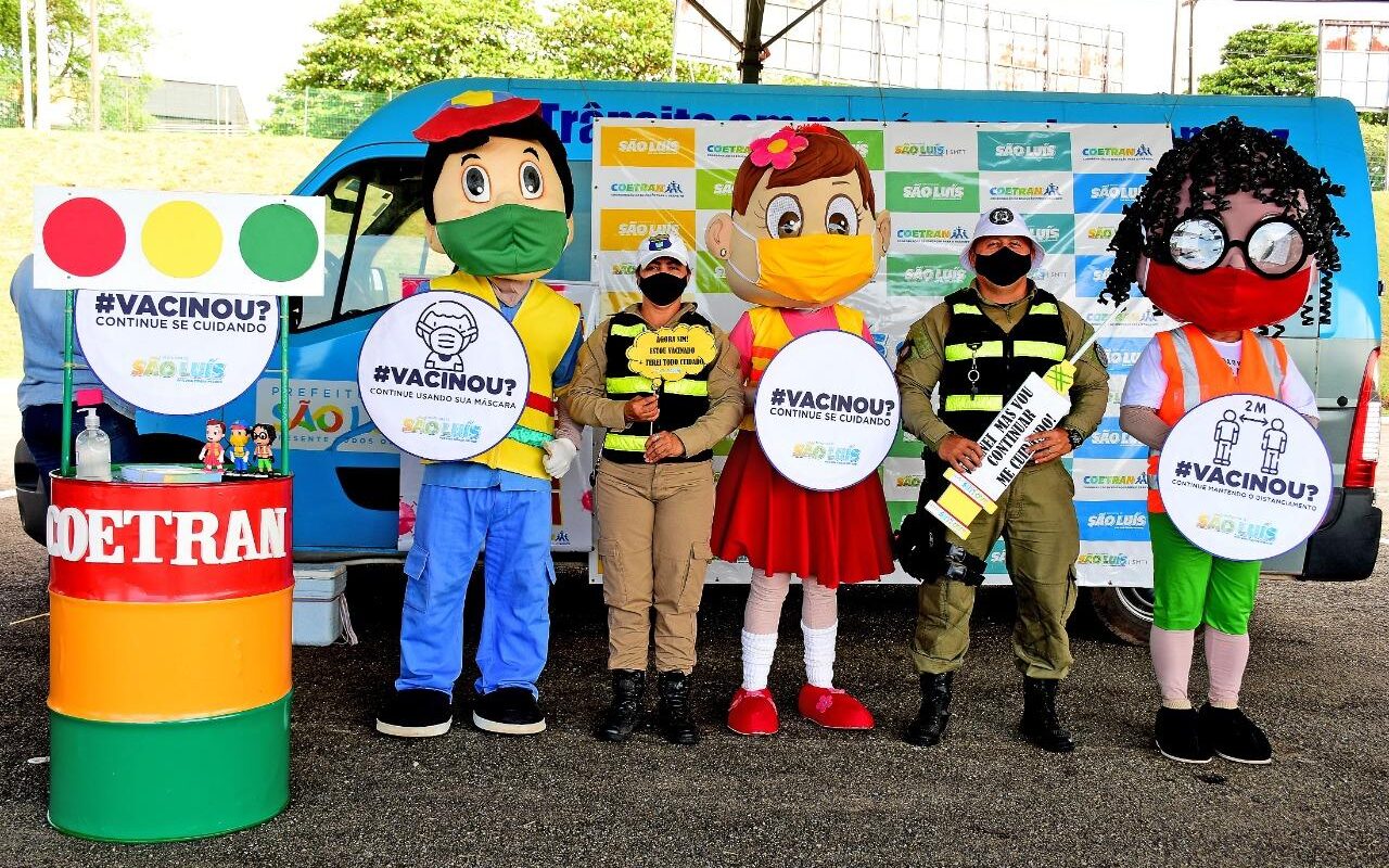 “A SMTT, por meio da Coordenação de Educação para o Trânsito (Coetran), precisava se inserir nessa vacinação de alguma forma, através de um incentivo lúdico. Por isso, pensamos nesta ação, chamada ‘vacinei + continuarei me cuidando’, por meio da qual levaremos a mensagem através de nossas mascotes, pelas plaquinhas com mensagem de consciência para continuar com as medidas contra a pandemia”, disse a coordenadora da Coetran, Adriane Pinheiro, na abertura da ação, na tarde desta segunda-feira (12), no drive-thru do Espaço Reserva, ao lado do Shopping da Ilha.